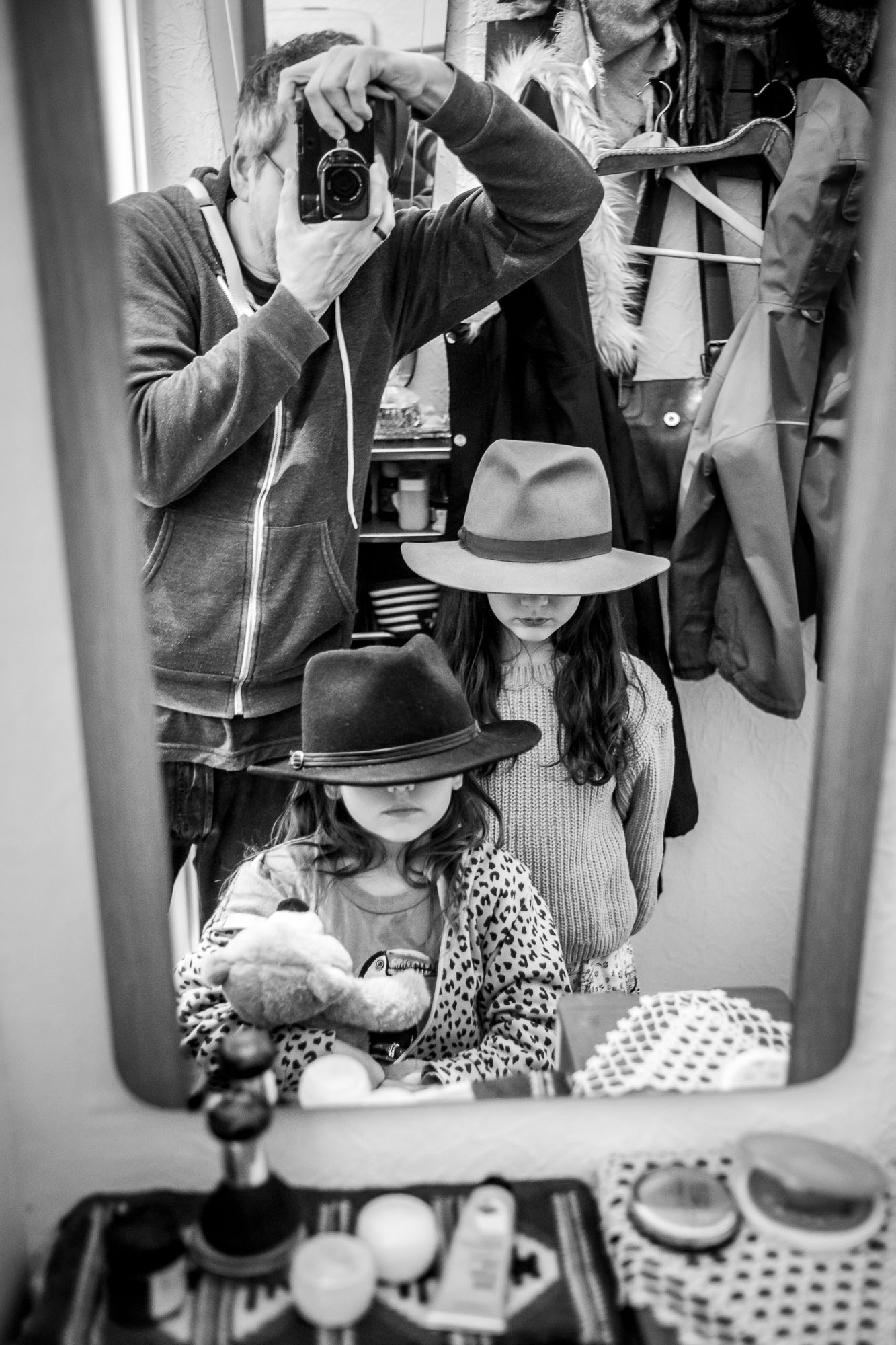 Trying on different hats at teyze's.