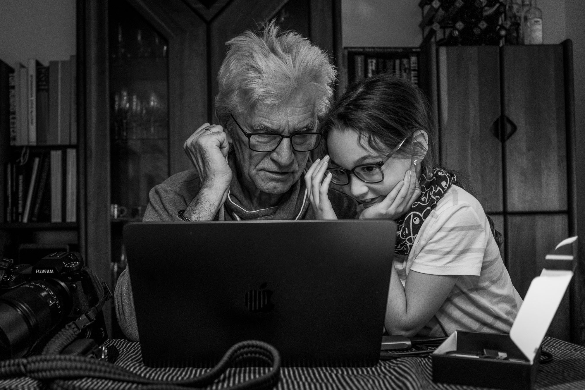 Reviewing today's images with grandpa – and observing light and shadow during a family walk this afternoon.